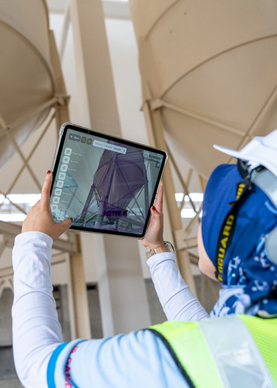 Developed, built in-house and integrated with Autodesk Construction Cloud, the GAMUDA BIMAR is an Augmented Reality (AR) mobile application that overlays project teams' virtual design models onto the real-world environment. This allows accurate comparison of site work against design, aimed at enhancing visualisation, which helps to increase the effectiveness of identifying discrepancies and fosters greater collaboration during work inspections.